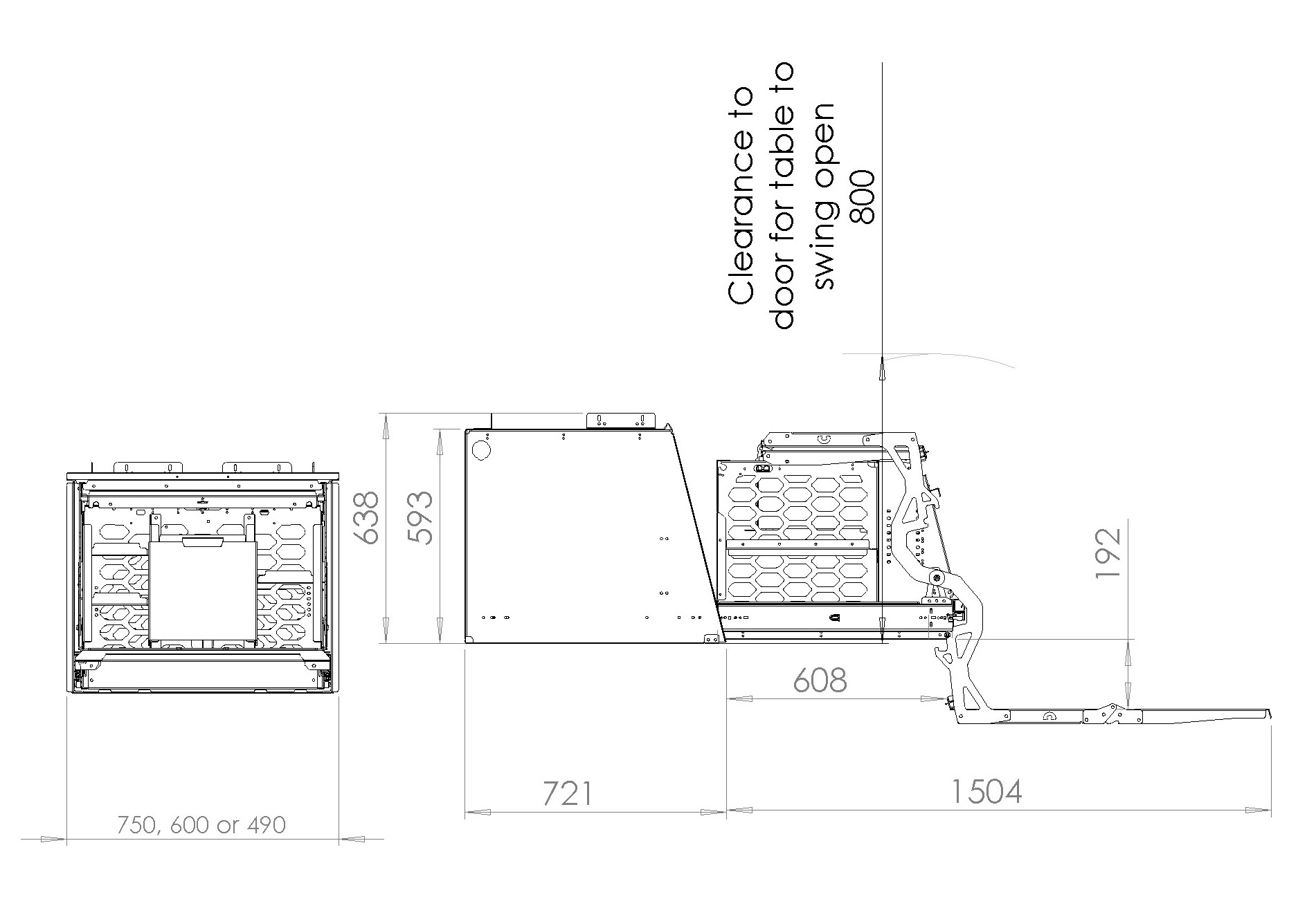 Please note – The table requires approx. 805mm of clearance from mounting surface to underside of canopy door to fold down, please contact us if not sure.