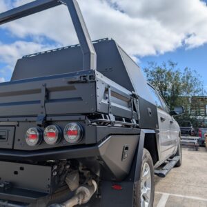 - Two under body boxes, tapered to improve departure angle